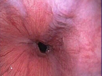 Lesion: Esophageal stenosis (1mm of diameter) at 4cm from upper sphincter and 13cm from front teeth, straight shaft, no oedema, no diverticula, no fistula in the boy 2-year-old operated esophagael astresia