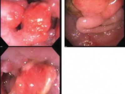 Adenocarcinoma of the right colon in 11 -year-old boy with significant weight loss, anemia, and ascites. Colonoscopy revealed severe edema of the distal part of the ascending colon. Further exploration of the ascending colon showed ulcerated large tumor. The biopsy...